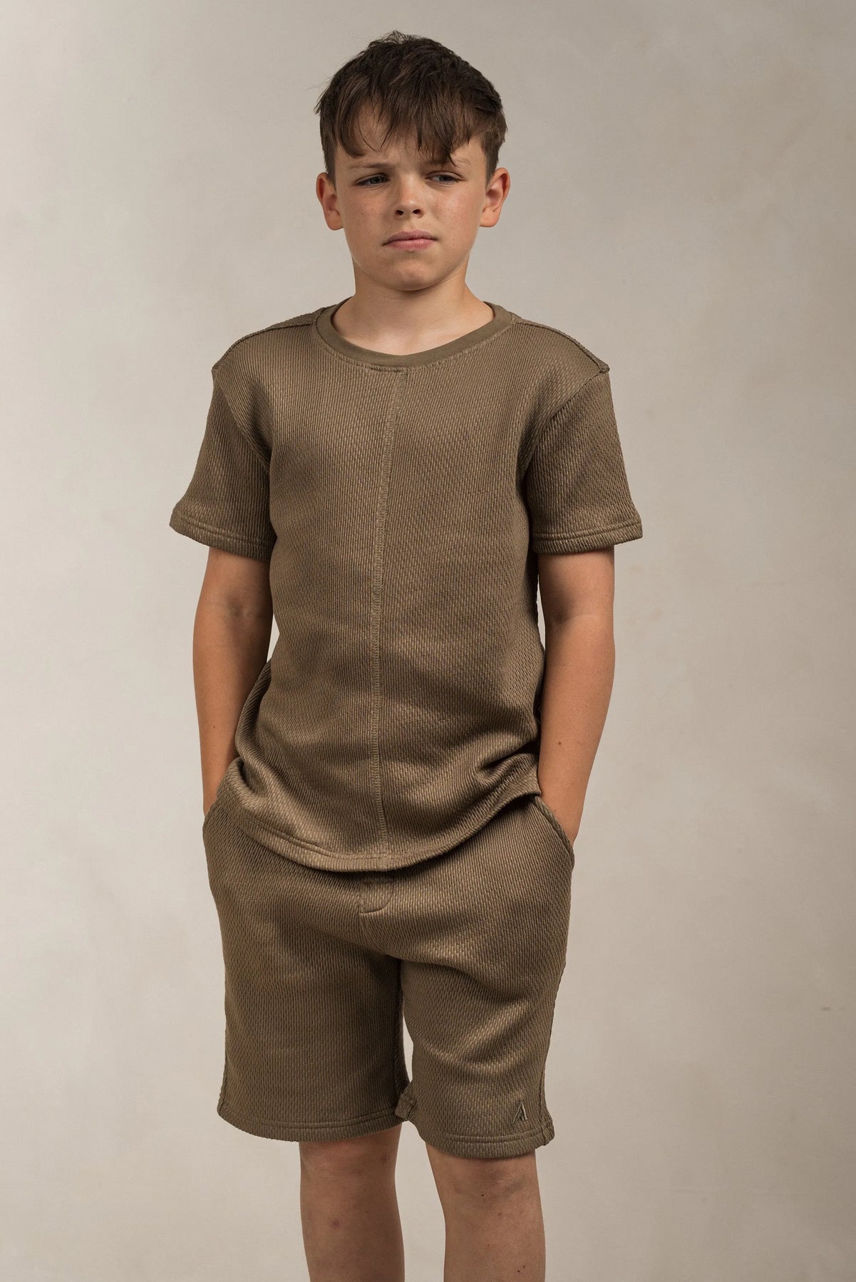 Junior Popcorn Textured Shorts Khaki