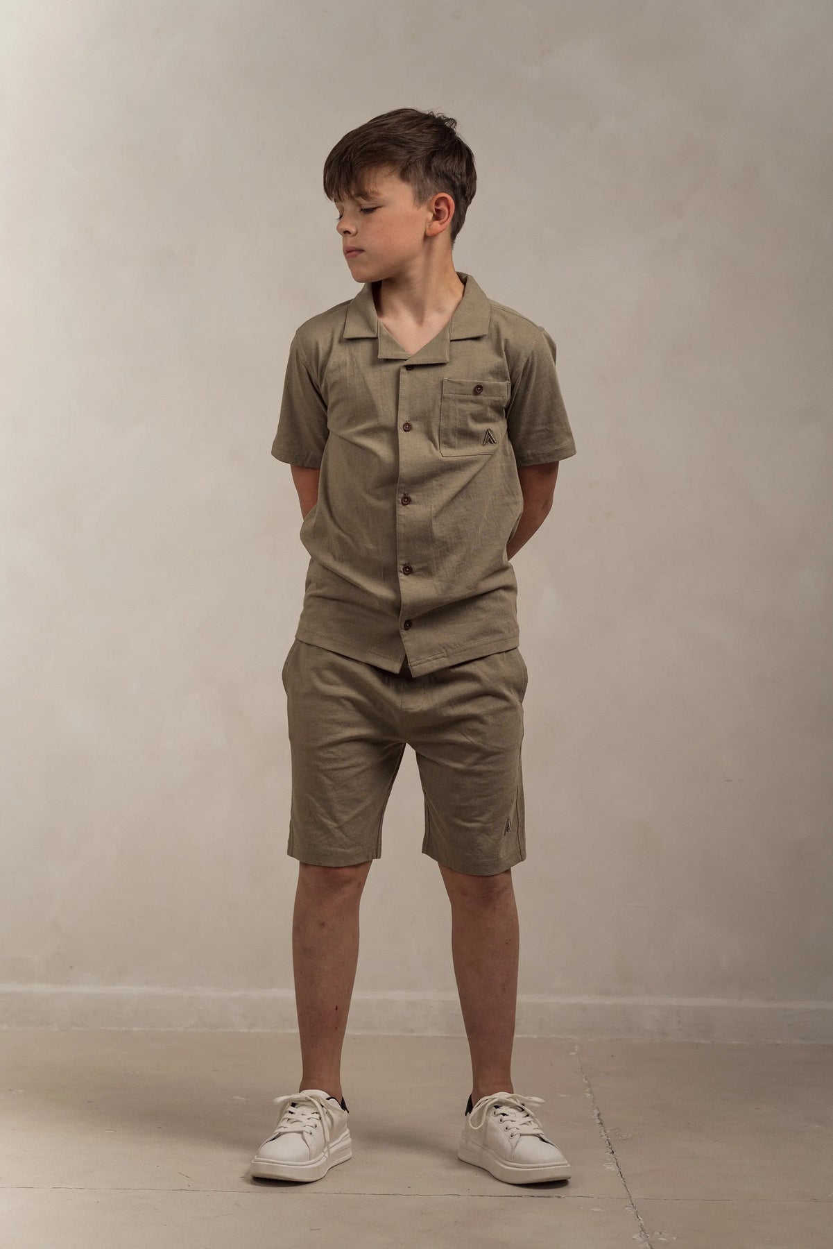 Clean, breathable, and built for comfort. These khaki shorts are crafted from a soft cotton-linen blend, offering a lightweight feel with a structured look. Cut in a regular fit with side pockets for everyday function, they’re an effortless staple for elevated off-duty styling.