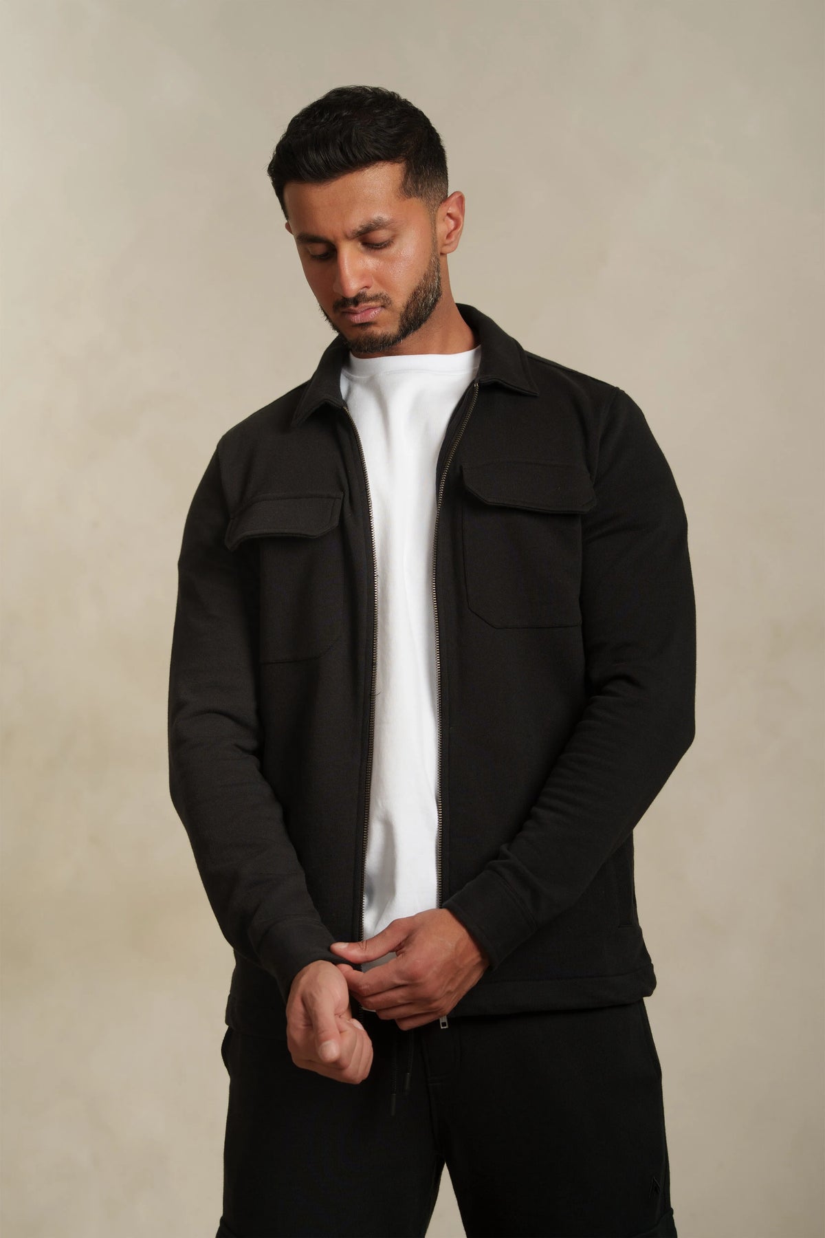 A versatile layer designed for modern everyday wear. Our Black Utility Zip-Through Shacket is crafted from soft-touch 100% cotton fleece at a substantial 340gsm, offering warmth and comfort with a smooth, premium handle. The relaxed fit delivers effortless layering potential, while flap pockets add a practical, utility-inspired edge. Perfect for transitioning between seasons or elevating your casual wardrobe with clean, functional style.