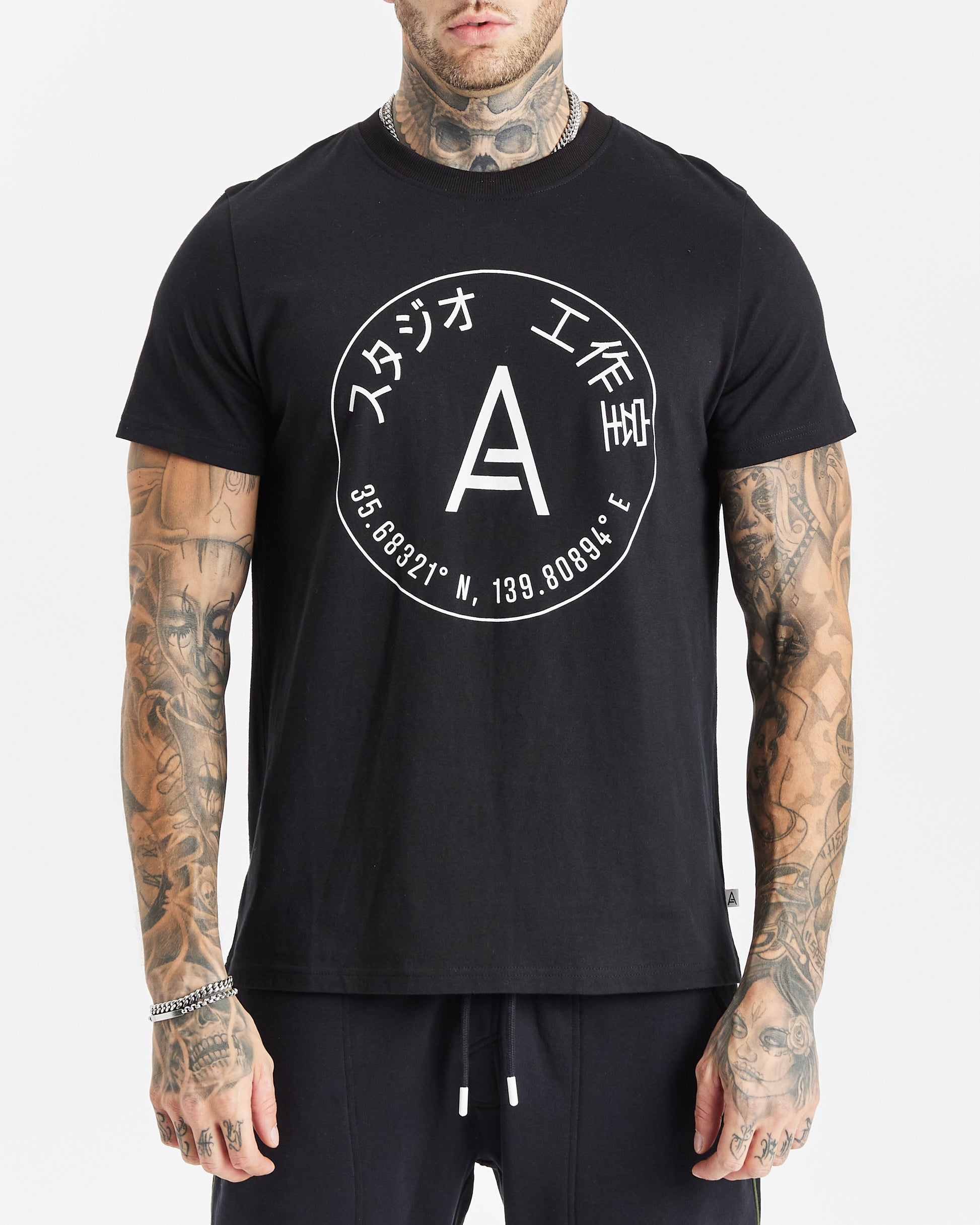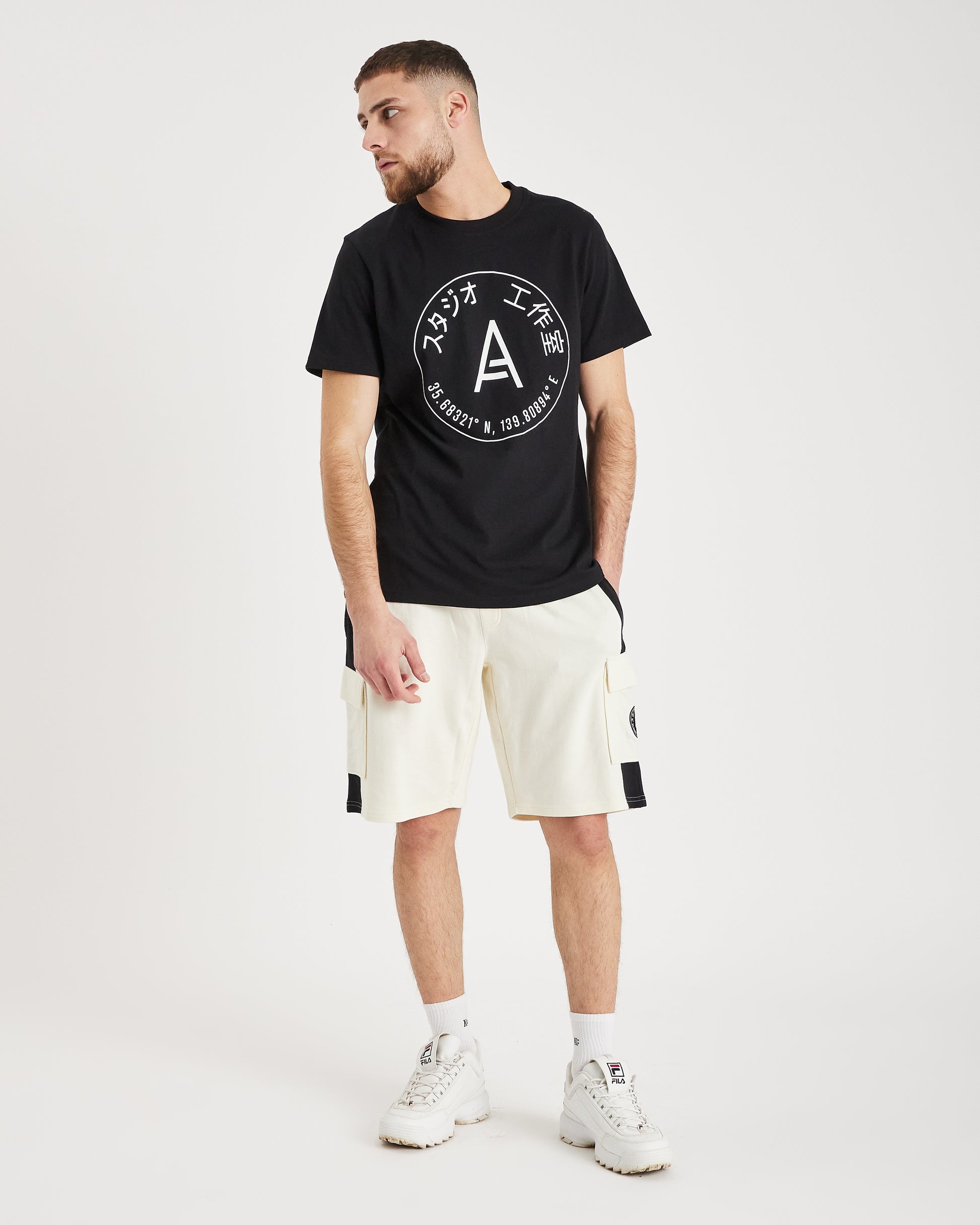 The Jax T-shirt makes an exciting addition to the Studio A summer collection. Complete with a large "Studio A" graphic to the chest, which pays homage to the brands identity of Japanese streetwear. This core black T-shirt allows you pair up with other Studio A garments. Style up with the Studio A Mac short to complete this look.